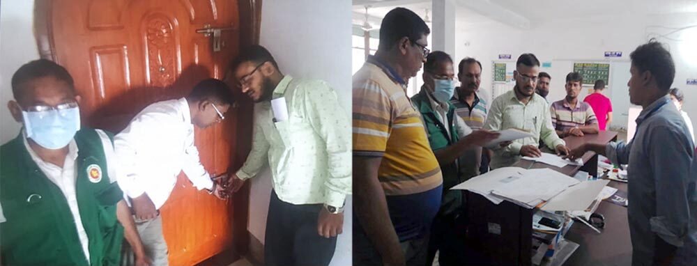 মেহেরপুরের মুজিবনগরে অনিবন্ধিত ৫টি প্রাইভেট হাসপাতাল ও ডায়াগনস্টিক সেন্টারের কার্যক্রম বন্ধ করে সিলগালা করে দিয়েছে উপজেলা স্বাস্থ্য বিভাগ। গতকাল সোমবার দুপুরে উপজেলার বিভিন্ন এলাকায় অভিযান চালিয়ে অনিবন্ধিত ওই ৫ প্রতিষ্ঠান সিলগালা করা হয়। এদিকে, চুয়াডাঙ্গার জীবননগরের আন্দুলবাড়ীয়া বাজারে অভিযান চালিয়ে দুটি ডায়াগনস্টিক সেন্টারে জরিমানা করা হয়। তাদের কাগজপত্র হালনাগাদ না থাকায় এ জরিমানা করা হয়। একইসাথে সকল কাগজপত্র এক সপ্তাহের মধ্যে হালনাগাদ করা না হলে স্থায়ীভাবে প্রতিষ্ঠান বন্ধ করে দেয়া হবে বলে জানানো হয়। অপরদিকে, ঝিনাইদহের মহেশপুরে ৩টি প্রতিষ্ঠান সিলগালা করা হয় এবং ৮টি প্রতিষ্ঠানে সতর্কীকরণ নোটিশ প্রদান করা হয়েছে।