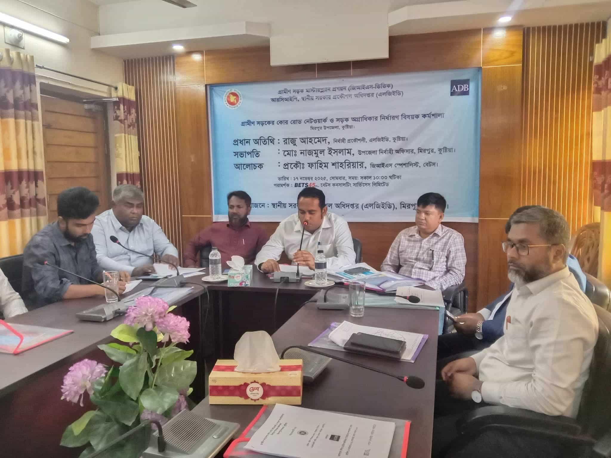 কুষ্টিয়া প্রতিনিধি: কুষ্টিয়ায় মিরপুরে গ্রামীণ সড়কের কোর রোড নেটওয়ার্ক ও সড়ক অগ্রাধিকার নির্ধারণ বিষয়ক কর্মশালা অনুষ্ঠিত হয়েছে। স্থানীয় সরকার প্রকৌশল অধিদপ্তর (এলজিইডি)’র উদ্যোগে সোমবার সকালে উপজেলা পরিষদের সভাকক্ষে এ কর্মশালা অনুষ্ঠিত হয়। উপজেলা নির্বাহী কর্মকর্তা নাজমুল ইসলামের সভাপতিত্বে অনুষ্ঠানে প্রধান অতিথির বক্তব্যে কুষ্টিয়া এলজিইডি’র নির্বাহী প্রকৌশলী রাজু আহমেদ বলেন, কোর রোড নেটওয়ার্ক হলো সড়ক নেটওয়ার্কের একটি অধিকারপ্রাপ্ত অংশ, যা সামাজিক অর্থনৈতিক উন্নয়নে সহায়তা করে। গ্রামীণ জনগোষ্ঠীর সুবিধার্থে টেকসই উন্নয়ন এবং অর্থনৈতিক প্রবৃদ্ধি ত্বরান্বিত করবে। কর্মশালার আলোচক বেটস কনসাল্টিং সার্ভিসেস লিমিটেডের জিআইএস স্পেশালিষ্ট প্রকৌশলী ফাহিম শাহরিয়ার। এ সময়ে কুষ্টিয়া এলজিইডির সিনিয়র সহকারী প্রকৌশলী আহসান হাবিব, সহকারী প্রকৌশলী রেজওয়ানুর রহমান, উপজেলা প্রকৌশলী জাহীর মেহেদী হাসান, উপজেলা কৃষি কর্মকর্তা আব্দুল্লাহ আল মামুন, উপজেলা প্রাণিসম্পদ কর্মকর্তা ডাঃ আব্দুল্লাহিল কাফি, উপজেলা সমাজসেবা কর্মকর্তা জামশেদ আলী, উপজেলা মৎস্য কর্মকর্তা আবুল কামাল আজাদ, উপজেলা জনস্বাস্থ্য অধিদপ্তরের উপ-সহকারী প্রকৌশলী মিজানুর রহমান, মিরপুর প্রেসক্লাবের সভাপতি মারফত আফ্রিদি, সাধারণ সম্পাদক রাশেদুজ্জামান রিমনসহ বিভিন্ন ইউনিয়নের প্রশাসনিক কর্মকর্তা ও ব্যবসায়ী প্রতিনিধিরা উপস্থিত ছিলেন।