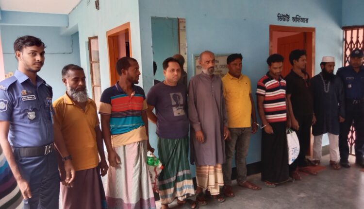 গাংনী প্রতিনিধি: বিভিন্ন মামলায় আদালতের পরোয়ানাভূক্ত পলাতক ৯ আসামিকে অভিযান চালিয়ে গ্রেফতার করেছে গাংনী থানা পুলিশ। বৃহস্পতিবার দিবাগত রাতের বিভিন্ন সময়ে শুক্রবার ভোররাত পর্যন্ত গাংনী উপজেলার পৃথক গ্রামে অভিযান চালিয়ে এসব পরোয়ানাভূক্ত পলাতক আসামিদের গ্রেফতার করা হয়। গ্রেফতারকৃতরা হলেন গাংনী থানা পাড়া এলাকার সিদ্দিকুর রহমানের ছেলে লিটন হোসেন, চিৎলা গ্রামের মৃত ইউনুছ আলীর ছেলে হায়দার আলী ও সাদ্দাম হোসেন, চরগোয়ালগ্রামের মৃত আমজাদ আলীর ছেলে আরশেদ আলী ও তার ছেলে সাদ্দাম হোসেন, একই গ্রামের আব্দুল মালেকের ছেলে শওকত আলী, কামারখালী গ্রামের আব্দুল খালেকের ছেলে ইব্রাহিম হোসেন, বালিয়াঘাট গ্রামের জমির উদ্দীনের ছেলে নাহারুল ইসলাম ওরফে লাল্টু এবং ভরাট গ্রামের সৈয়দ আলীর ছেলে মোজাম্মেল হক।