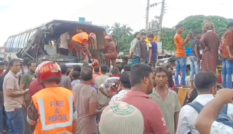 স্টাফ রিপোর্টার: ফরিদপুরের দুই বাসের মুখোমুখি সংঘর্ষে ৪ জন নিহত হয়েছেন। ঘটনাটি ঘটেছে ঢাকা-খুলনা মহাসড়কে কানাইপুর নতুন ব্রীজের ওপর। এতে আহত হয়েছেন কমপক্ষে ১৫ জন। এ সময় মহাসড়কে যানজটের সৃষ্টি হয়। পরে পুলিশ ও ফায়ার সার্ভিসের সদস্যরা পরিস্থিতি স্বাভাবিক করে। গতকাল বৃহস্পতিবার দুপুর সাড়ে বারটার দিকে এ দুর্ঘটনা ঘটে। দুর্ঘটনায় নিহত ওই তিন জন হলেন, চুয়াডাঙ্গার দামুরহুদা উপজেলার পীরপুর গ্রামের সহিরউদ্দিনের ছেলে আতিয়ার শেখ (৫৫), একই উপজেলার বোয়ালমারী গ্রামের আশরাফুল ইসলামের স্ত্রী শারমিন আক্তার, জীবননগর উপজেলার বাঁকা গ্রামের সিদ্দিকের মেয়ে সুবর্না আক্তার (২৩)। সুর্বনা আক্তার নওগা জেলার বাদলগাছি উপজেলার বইকুন্ঠপুর গ্রামের আব্দুল মজিদের স্ত্রী। বড়গুনা জেলার বামনা উপজেলার চালিতাবুনিয়া গ্রামের রবি শ্যাম চন্দ্র দাসের ছেলে রনজিত চন্দ্র দাস (৪৮)। রনজিত চন্দ্র দাস চুয়াডাঙ্গার জীবননগর উপজেলার এরিয়া সমন্বয়কারী হিসেবে কর্মরত ছিলেন। পুলিশ, ফায়ার সার্ভিস ও স্থানীয় সুত্রে জানা গেছে, চুয়াডাঙ্গা থেকে ছেড়ে আসা ঢাকাগামী রয়েল এক্সপ্রেস ও ঢাকা থেকে ছেড়ে আসা চুয়াডাঙ্গাগামী দর্শনা ডিলাক্স দুটি পরিবহন মুখোমুখি সংঘর্ষের ঘটনা ঘটে। এতে ঘটনাস্থলেই একজন নারী ও দুই জন পুরুষ নিহত হন। এতে আহত হয়েছেন কমপক্ষে ১৫ জন। আহতদের ফরিদপুর মেডিকেল কলেজ হাসপাতালে পাঠানো হয়েছে। ঢাকায় নেয়ার পথে শারমিন আক্তার মারা যান। স্থানীয় বাসিন্দা ও প্রত্যক্ষদর্শী আরিফুজ্জামান চাঁন বলেন, ঘটনাস্থলে তিনজন নিহত হয়েছেন। আহত হয়েছেন কমপক্ষে ১৫ জন যাত্রী।