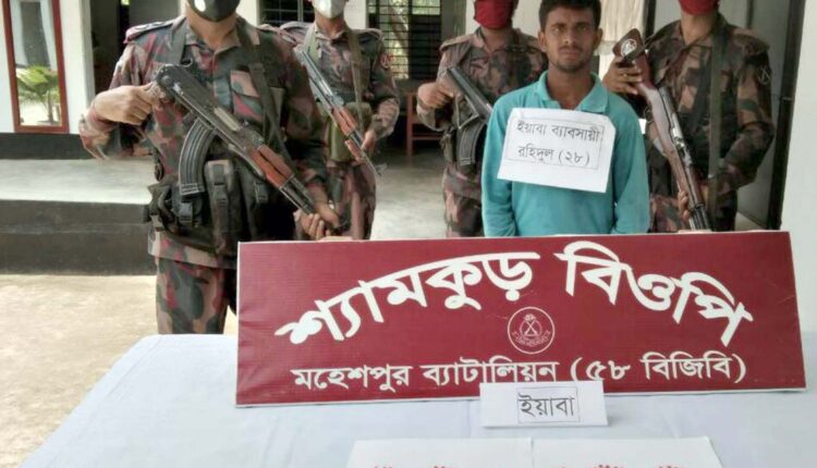 মহেশপুরে শ্যামকুড় সীমান্তে ইয়াবা সহ এক মাদক ব্যবসায়ীকে আটক করেছে ৫৮ বিজিবি।