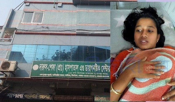ঝিনাইদহ প্রতিনিধি: ঝিনাইদহের কালীগঞ্জে নরমালে সন্তান ডেলিভারি হওয়ার পর রাণী বেগন নামে এ প্রসূতিকে জোর করে সিজার করার অভিযোগ পাওয়া গেছে। ঘটনাটি ঘটেছে কালীগঞ্জ শহরের দারুস শেফা প্রাইভেট হাসপাতাল অ্যান্ড ডায়াগনষ্টিক সেন্টারে। রাণী বেগম ঝিনাইদহ সদর উপজেলার কয়ারগাছি গ্রামের আল আমিনের স্ত্রী। এমন অভিযোগে গতকাল বুধবার সকালে প্রসূতির স্বামী আল আমিন কালীগঞ্জ থানায় একটি লিখিত অভিযোগ করেন। লিখিত অভিযোগে উল্লেখ করা হয়েছে, ১৫ ডিসেম্বর রাতে রাণী বেগমের প্রসব বেদনা শুরু হলে কালীগঞ্জ শহরের দারুস শেফা প্রাইভেট হাসপাতাল এ- ডায়াগনষ্টিক সেন্টারে ভর্তি করা হয়। এসময় উপস্থিত ডাক্তার রোকসানা পারভিন ইলোরা বলেন দ্রুত অপারেশন করতে হবে, নইলে রোগী ও তার সন্তানকে বাঁচানো যাবে না। এসময় অপারেশনের জন্য ১২ হাজার টাকা চুক্তি হয়। কিছুক্ষণ পরেই রোগীকে অপারেশন থিয়েটারে নেয়া হয় কিন্তু সিজারের আগেই নরমাল ডেলিভারির মাধ্যমে পুত্র সন্তান হয়। তারপরও জোরপূর্বক ডাক্তার ও ম্যানেজার মাসুদ হোসেন সিজার করতে যায়। এ সময় প্রসূতি অপারেশনে বাধা দিলে ম্যনেজার রোগীকে মারধর শুরু করে। এ সময় বলে তুই কি ডাক্তারের থেকে বেশি বুঝিস। বেশি কথা বললে চিরদিনের জন্য ঘুম পাড়িয়ে দেব। এরপর জোরপূর্বক অজ্ঞান করে সিজার করে। প্রসূতির স্বামী আল আমিন অপ্রযোজনে আমার স্ত্রীকে মারধর ও অপারেশন করা হয়েছে। আমার অসুস্থ স্ত্রীকে অমানবিকভাবে মারধর ও হত্যার হুমকির বিচার দাবি করেন। দারুস শেফা প্রাইভেট হাসপাতাল যেয়ে অভিযুক্ত ডাক্তার ও ম্যানেজার মাসুদকে পাওয়া যায়নি। তবে, হাসপাতালের মালিক ফিরোজ হোসেন জানান, বাচ্চা নরমালেই ডেলিভারি হয়েছে। তবে রোগীর অতিরিক্ত রক্তক্ষরণ হচ্ছিলো। ফলে রক্ত বন্ধ করতেই সিজার করা হয়েছিলো। কালীগঞ্জ থানার ওসি মাহফুজুর রহমান জানান, অভিযোগ পেয়েছি, তদন্ত করে দেখছি। তদন্তে দোষী প্রমাণিত হলে প্রয়োজনী ব্যবস্থা নেয়া হবে। প্রসংগত, ঝিনাইদহ জেলার বেশিরভাগ ক্লিনিক লাইসেন্স নবায়ন ছাড়াই মাসের পর মাস ব্যবসা চালিয়ে যাচ্ছে। উপজেলা পর্যায়ের ক্লিনিকগুলোতে অহরহ অপচিকিৎসা চলছে। ডাক্তারের অবহেলায় প্রসূতির মৃত্যু ঘটছে। ক্লিনিকগুলোতে চিকিৎসার উন্নত পরিবেশ নেই। সর্বক্ষনিক চিকিৎসক বা প্রশিক্ষিত র্নাস নেই। ১০ বেডের পরিবর্তে শয্যা বাড়িয়ে ৫০/৬০ জন করে রোগী ভর্তি করা হয়। নীতিমালা ভঙ্গ করার পরও এসব ক্লিনিক ও ডায়াগনেস্টিক সেন্টার নতুন লাইসেন্স পাচ্ছে। পুরানো লাইসেন্স নবায়ন হচ্ছে। ঝিনাইদহ সিভিল সার্জন অফিস থেকে তথ্য নিয়ে জানা গেছে, ঝিনাইদহের ৬ উপজেলায় মোট ক্লিনিক ও ডায়াগনেস্টিক সেন্টরের সংখ্যা ১৬৯টি। এর মধ্যে ক্লিনিক রয়েছে ৮১টি। সুত্রমতে জেলার কোটচাঁ