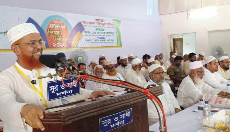 দর্শনা অফিস: দর্শনায় দিনব্যাপী রুকন শিক্ষা শিবির অনুষ্ঠিত হয়েছে। অনুষ্ঠানে প্রধান অতিথি ছিলেন বাংলাদেশ জামায়াতে ইসলামী কেন্দ্রীয় সহকারী সেক্রেটারি জেনারেল মাওলানা আব্দুল হালিম। চুয়াডাঙ্গা জেলা জামায়াতের আয়োজনে গতকাল শনিবার দর্শনা অডিটোরিয়ামে সকাল ৮টায় দিনব্যাপী রুকনদের শিক্ষা শিবির শুরুতেই উদ্বোধনী বক্তব্য রাখেন জেলা জামায়াতের নায়েবে আমির ও শিক্ষা শিবিরের ব্যবস্থাপক মাওলানা আজিজুর রহমান। বিশেষ অতিথি ছিলেন কেন্দ্রীয় নির্বাহী পরিষদ সদস্য ও যশোর- কুষ্টিয়া অঞ্চল পরিচালক মোবারক হোসাইন। জামায়াতে ইসলামীর চুয়াডাঙ্গা জেলা শাখার আমির রুহুল আমিনের সভাপতিত্বে অনুষ্ঠিত রুকন শিক্ষা শিবিরে জেলার ৬ শতাধিক পুরুষ রুকন অংশ নেন। এতে আরও উপস্থিত ছিলেন চুয়াডাঙ্গা জেলা জামায়াতের সহকারী সেক্রেটারি অ্যাড. মাসুদ পারভেজ রাসেল, জেলা জামায়াতের সহকারী সেক্রেটারি আব্দুল কাদের, জেলা কর্ম ও শুরা সদস্য বৃন্দ্ব, সকল উপজেলা আমির ও সেক্রেটারিসহ সকল পর্যায়ের নেতৃবৃন্দ্ব। শিক্ষা শিবিরে স্বাগত বক্তব্য রাখেন জেলা জামায়াতের নায়েবে আমির ও শিক্ষা শিবির পরিচালক মাওলানা আজিজুর রহমান। অনুষ্ঠানটি পরিচালনা করেন জেলা জামায়াতের সেক্রেটারি অ্যাডভোকেট আসাদুজ্জামান। এছাড়াও বেলা ৪টায় জেলা কর্মপরিষদ সদস্যের সাথে ও সাড়ে ৪টায় অডিটোরিয়ামে জেলা তালিমুল কুরআন সকল বিভাগের দায়িত্বশীল নিয়ে আয়োজিত বৈঠকে প্রধান অতিথির বক্তব্য রাখেন জামায়াতে ইসলামীর কেন্দ্রীয় সহকারী সেক্রেটারি জেনারেল মাওলানা আব্দুল হালিম। জামায়াতে ইসলামীর চুয়াডাঙ্গা জেলা শাখার আমির মো. রুহুল আমিনের সভাপতিত্বে অনুষ্ঠিত রুকন শিক্ষা শিবিরে জেলার ৬ শতাধিক পুরুষ রুকন অংশ নেন। এতে আরও উপস্থিত ছিলেন চুয়াডাঙ্গা-১ আসনের জামায়াত মনোনীত সংসদ সদস্য প্রার্থী ও জেলা সহকারী সেক্রেটারি অ্যাড. মাসুদ পারভেজ রাসেল, জেলা জামায়াতের সহকারী সেক্রেটারি আব্দুল কাদের, জেলা কর্ম ও শুরা সদস্য বৃন্দ্ব, সকল উপজেলা আমির ও সেক্রেটারিসহ সকল পর্যায়ের নেতৃবৃন্দ। শিক্ষা শিবিরে স্বাগত বক্তব্য রাখেন জেলা জামায়াতের নায়েবে আমীর ও শিক্ষা শিবির পরিচালক মাওলানা আজিজুর রহমান। অনুষ্ঠানটি পরিচালনা করেন জেলা জামায়াতের সেক্রেটারি অ্যাডভোকেট আসাদুজ্জামান। বিকাল সাড়ে ৪টায় অডিটোরিয়ামে জেলা তালিমুল কুরআনের সকল বিভাগের দায়িত্বশীল নিয়ে আয়োজিত বৈঠকে প্রধান অতিথির বক্তব্য রাখেন জামায়াতে ইসলামীর কেন্দ্রীয় সহকারী সেক্রেটারি জেনারেল মাওলানা আব্দুল হালিম। বিষয়ভিত্তিক দারসুল হাদিস পেশ করেন অঞ্চল টিম সদস্য সাবেক মাগুরা জেলা আমীর অধ্যাপক আলমগীর বিশ্বাস। চুয়াডাঙ্গা জেলা আমীর রুহুল আম