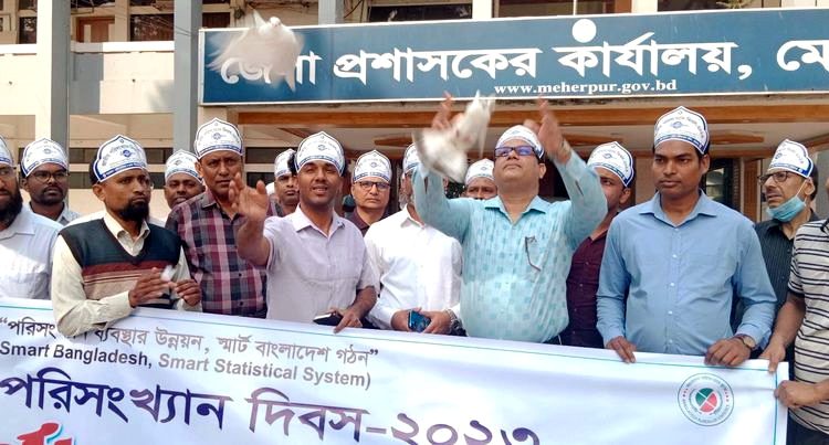 মেহেরপুর অফিস: আলোচনা সভা, র্যালি ও কপোতমুক্ত করণের মধ্য দিয়ে মেহেরপুরে জাতীয় পরিসংখ্যান দিবস পালিত হয়েছে। গতকাল সোমবার সকালের দিকে জেলা প্রশাসন ও জেলা পরিসংখ্যান অফিসের যৌথ উদ্যোগে এ অনুষ্ঠান অনুষ্ঠিত হয়। অতিরিক্ত জেলা প্রশাসক (সার্বিক) লিংকন বিশ্বাসের সভাপতিত্বে জেলা প্রশাসকের সম্মেলন কক্ষে অনুষ্ঠিত আলোচনা সভায় প্রধান অতিথি হিসেবে উপস্থিত ছিলেন জেলা প্রশাসক ড. মোহাম্মদ মুনসুর আলম খান। “পরিসংখ্যান ব্যবস্থার উন্নয়ন স্মার্ট বাংলাদেশ গঠন” শীর্ষক আলোচনা সভায় বক্তব্য রাখেন জেলা পরিসংখ্যান কর্মকর্তা বছির উদ্দিন, জেলা বঙ্গবন্ধু শিক্ষা ও গবেষণা পরিষদের সভাপতি প্রফেসর হাসানুজ্জামান মালেক, প্রধান শিক্ষক শাশ্বত নিপন চক্রবর্তী প্রমুখ। এর আগে জাতীয় পরিসংখ্যান দিবস উপলক্ষ্যে একটি র্যালি বের করা হয়। অতিরিক্ত জেলা প্রশাসক (সার্বিক) লিংকন বিশ্বাসের নেতৃত্বে র্যালিটি জেলা শিল্পকলা একাডেমির সামনে থেকে শুরু হয়ে প্রধান সড়ক প্রদক্ষিণ শেষে জেলা প্রশাসকের কার্যালয় গিয়ে শেষ হয়। পরে জেলা প্রশাসকের কার্যালয় চত্বরে শান্তির প্রতীক পায়রা ওড়ানো হয়। র্যালিতে অন্যান্যের মধ্যে জেলা পরিসংখ্যান কর্মকর্তা বছির উদ্দিন, জেলা নির্বাচন অফিসার মোহাম্মদ ওয়ালিউল্লাহ, ইসলামিক ফাউন্ডেশনের উপ-পরিচালক এজেএম সিরাজুম মুনির, বিআরডিবি’র উপ পরিচালক জাকিরুল ইসলাম প্রমুখ উপস্থিত ছিলেন।